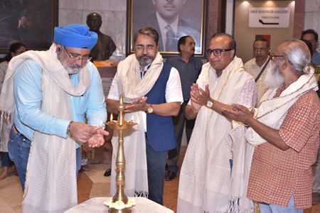 The event was further graced by the presence of noted academicians including **Ganesh Tartare, Professor at the Sir J. J. School of Art, and **Him Chatterjee, Vice Chancellor of J.J. School of Art Architecture and Design. Their participation reflected the close relationship between artistic practice and academic discourse, particularly in a city like Mumbai where both traditions continue to shape the contemporary art landscape.