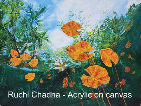 The opening evening brought together artists, students, collectors, and art enthusiasts, creating an atmosphere of engagement and dialogue. Visitors moved through the gallery spaces encountering works that explore inner landscapes through distinct yet complementary visual languages. While Bharti Verma’s practice engages with the human form and emotional interiority, Ruchi Chadha’s works draw upon the symbolic resonance of the lotus, reflecting themes of resilience, emergence, and quiet transformation.